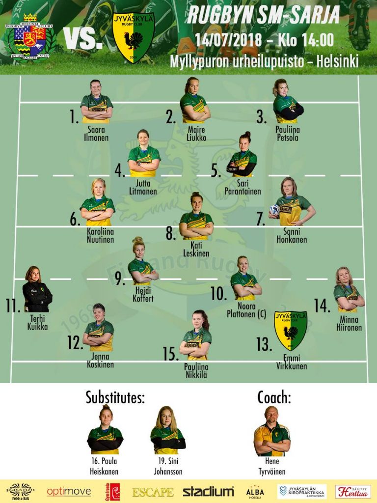 Kaikilla oli kuuma, mutta siitä voi olla ylpeä että porukalla tsempattiin tauoilla toisiamme ja valettiin uskoa siitä, että tästäkin hornankattilasta selvitään hengissä ja jossain loppuvihellyksen tuolla puolen odottaa iso kylmä, kylmä, helmeilevä, ravitseva vissy ja soijatortillaa kaikkensa antaneille. Missään vaiheessa ei siirrytty pelaamaan passiivista peliä, vaan palloa pelattiin ja saalistettiin jatkuvasti. Kesän näyttävimmät rakot saatiin myös tästä pelistä. Innolla odotamme helsinkiläisiä Jyväskylän auringon alle elokuussa.
