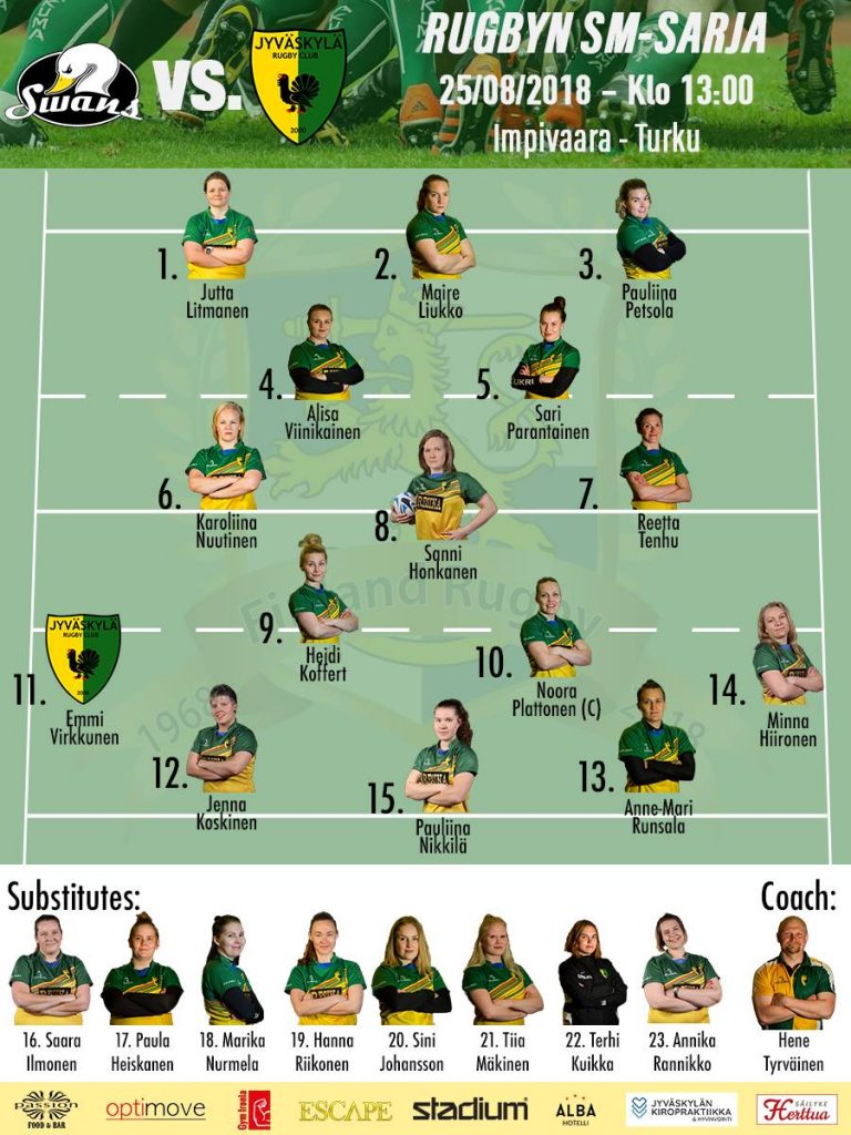 Ensi viikonloppuun mentäessä naisten sarjan tilanne näyttää tältä, eli loppukaudesta tulee kutkuttavan tiukka. Jyväskylä tunnetusti pelaa parhaiten tiukoissa paikoissa, joten odotamme loppukautta malttamattomasti ja mielenkiinnolla. Seuraava peli otellaan lauantaina Huhtasuolla klo 13.00 Helsinki Rugby Clubia vastaan. Ajan tasalla olevan taulukon löydät täältä