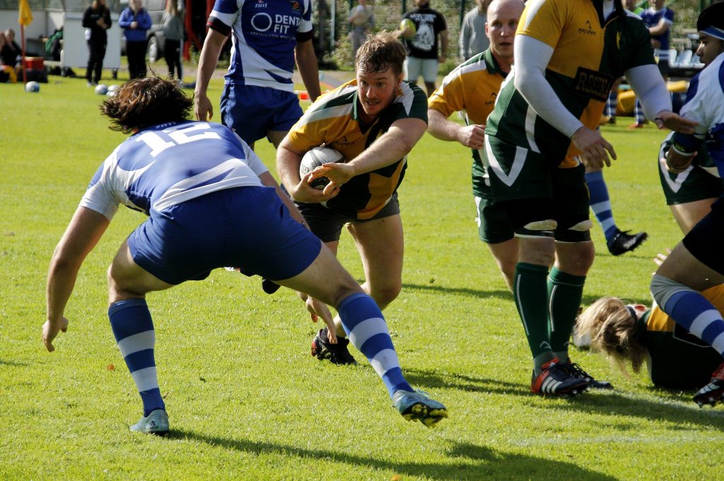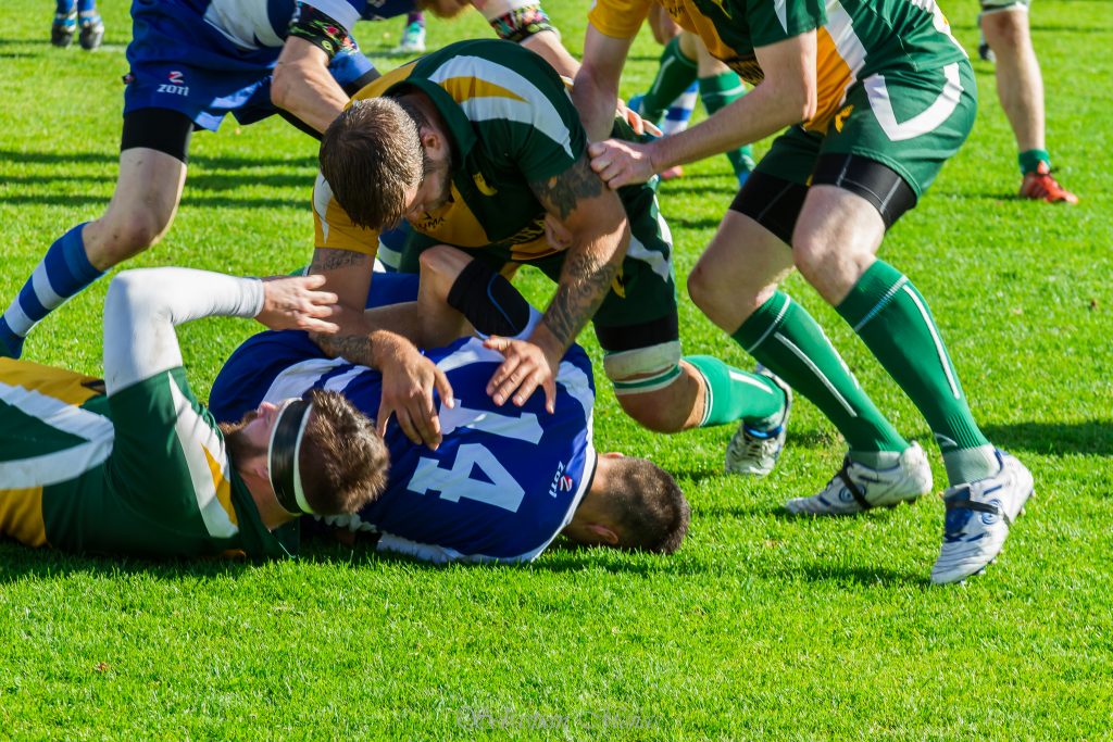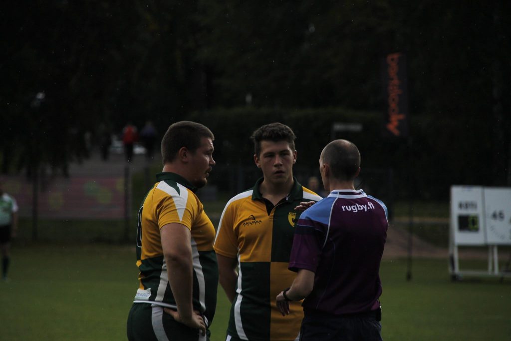 Jotta herääminen peliin ei tapahdu ilman draamaa, otti huimaa kehitystä pitkin kauden osoittanut Jesse Laukkanen keltaisen kortin tahattomasta korkeasta taklauksesta. Hurjan näköisestä tilanteesta onneksi vältyttiin ilman loukkaantumisia. Mies alivoimasta huolimatta JRC painoi päälle kuin yleinen syyttäjä. Kymmenen minuuttinen taisteltiin tasaisesti molemmissa päädyissä kenttää ja yksi HRC:n juoksumaaliyritys pysäytettiin jopa riistämällä pallo juuri ennen maahan painamista. Rangaistus lusittiin ja peliä jatkettiin tasajoukkuein. Mäyrät pelasivat omaa tuttua aggressiivista hyökkäyspeliään ja vaihe vaiheelta oltiin lähempänä Helsingin maaliviivaa. Sitten n. 20 minuutin puurtamisen jälkeen Tomi Moilanen ja Elias Korhonen murtautuivat Helsingin puolustuksen läpi ja Korhosen upeasta offload-syötöstä Moilanen pääsi juoksemaan pallon maaliin. Théo Pellé potki vielä varmasti pallon puikkoihin tasoittaen pelin lukemiin 7-7. Ja jotta ei vieläkään mäyrillä olisi helppoa, loistavaa kautta pelaava Elias Korhonen joutuu raajavamman vuoksi jättämään pelin kesken. Suuri menetys Badgersin takapelaajille ja koko joukkueelle.