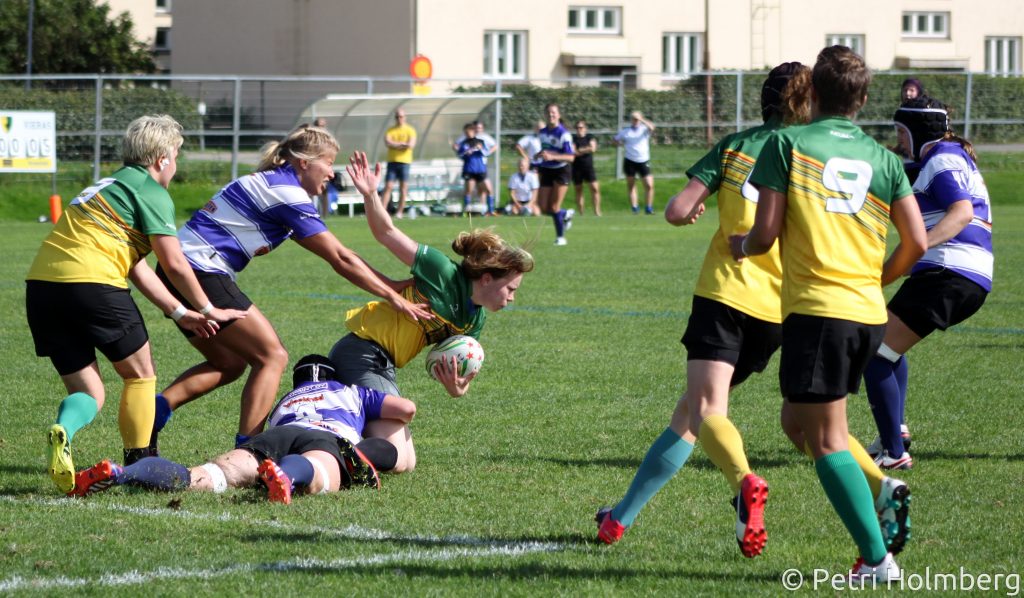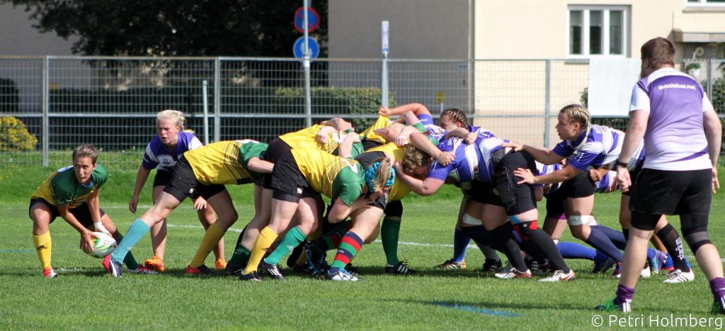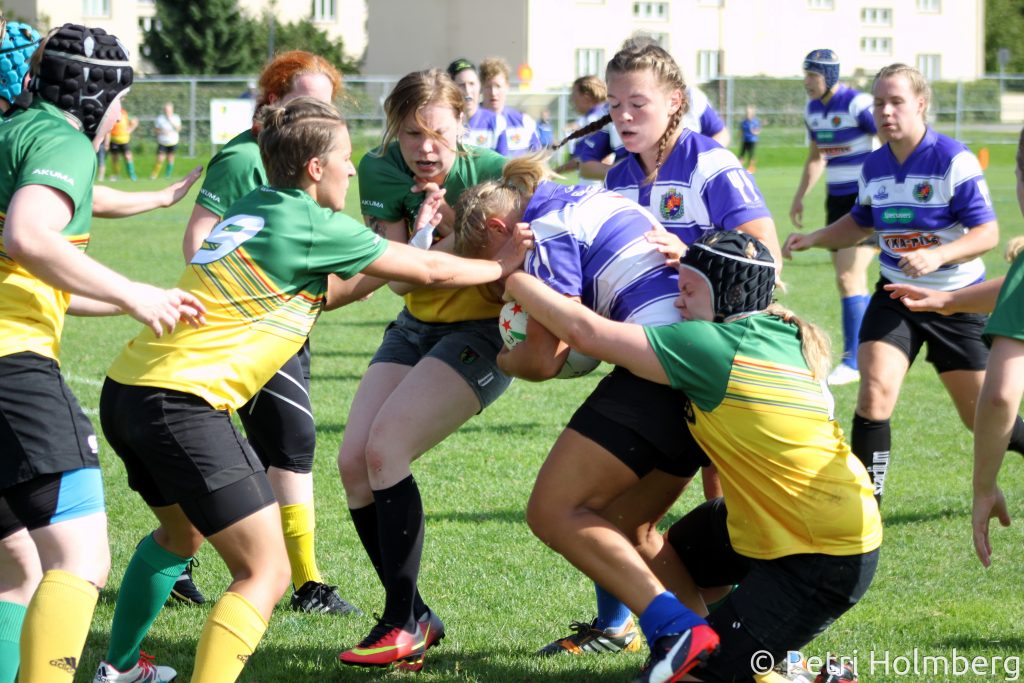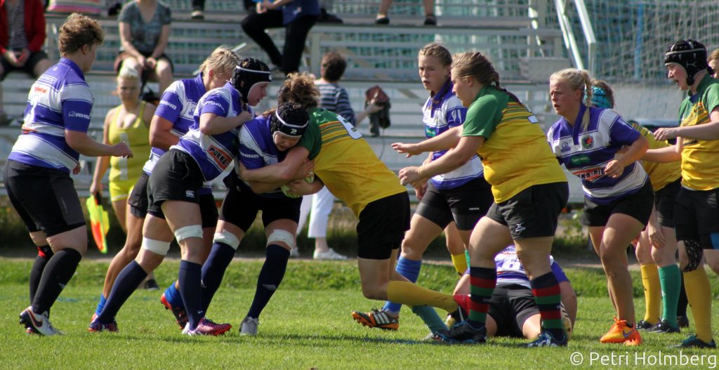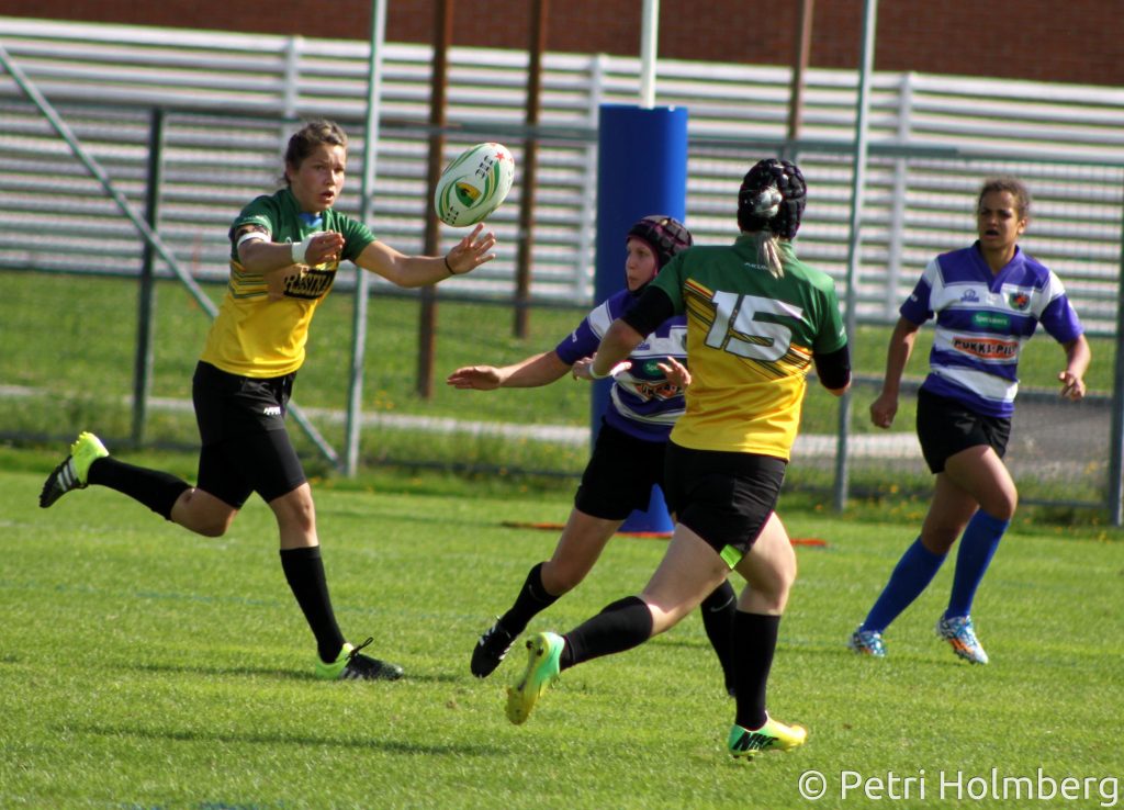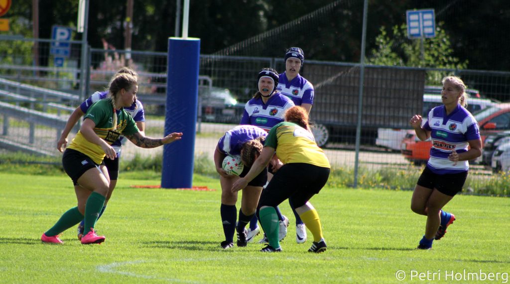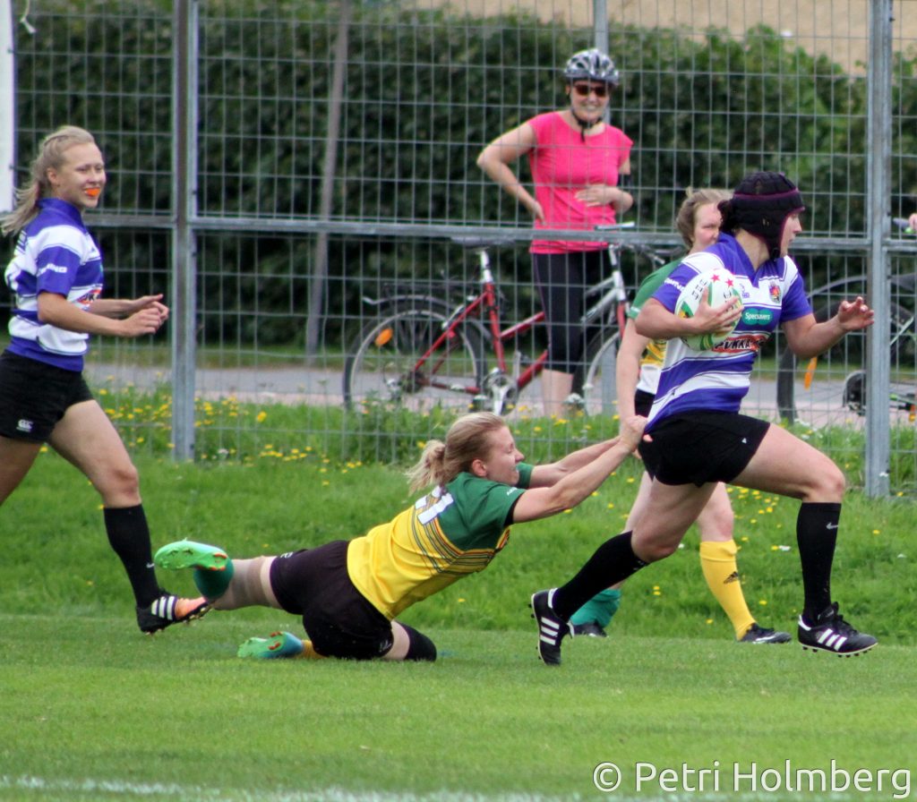 Peli oli todella kovaa, fyysistä ja tasaista vääntöä. Kyseessä oli varmasti yksi tämän kauden fyysisimmistä peleistä koko Suomen naisrugbyn saralla. Lopulta se kaatui siihen, että Helsinki käytti annetut try-paikat Jyväskylän viimeistelyn jäädessä puolitiehen. Jyväskylä pääsi myllyttämään kymmenen minuuttia ylivoimalla HRC:n pelaajan potkittua maassa makaavaa jyväskyläläistä ansaiten itselleen keltaisen kortin. Pari paikkaa saatiin luotua puoliväkisin, mutta HRC:n puolustus pelasti ne. Toisaalta myös Jyväskylän linja toimi hyvin antaen painetta, ja taistellen tilanteet loppuun saakka. Alla Eve näyttää mallia periksiantamattomuudesta ja asenteesta.